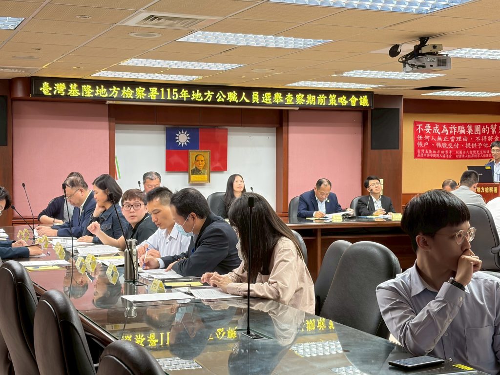 檢警調廉移等群策群力,維護公平選舉守護民主。為因應今年地方公職人員選舉即將到來,台灣基隆地檢署召開「選舉查察期前策略會議」,邀基隆市警局、新北市警局、航調處基隆調查站、新北市調查處、基隆市調查站、基市政風處、新北市政風處、基隆憲兵隊及移民署基隆市專勤隊等機關,共同與會,整合查察能量,提前部署選舉查察工作。