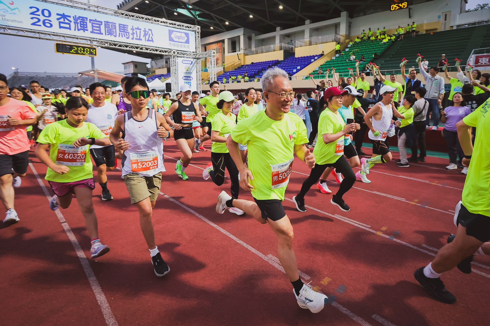 第五屆杏輝宜蘭馬拉松」十一日清晨在宜蘭運動公園田徑場盛大起跑。今年賽事首度由往年的秋冬之際移師至春季舉行,宜人的氣候成功吸引全台共三千二佰多位跑者共襄盛舉,參賽人數一舉突破歷年紀錄。