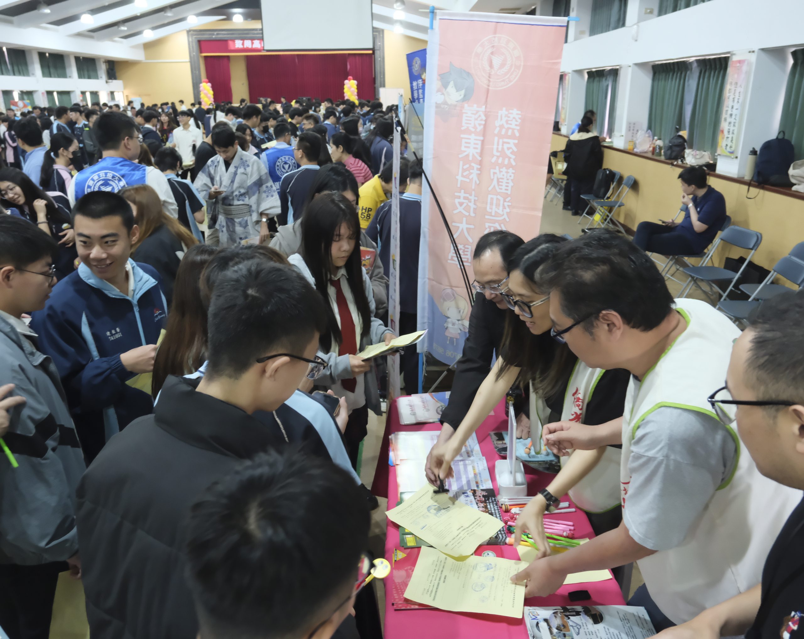僑光科技大學在114學年度升學就業輔導博覽會現場設攤提供即時諮詢服務,深化學生對未來學習方向的認識。(記者陳榮昌攝)