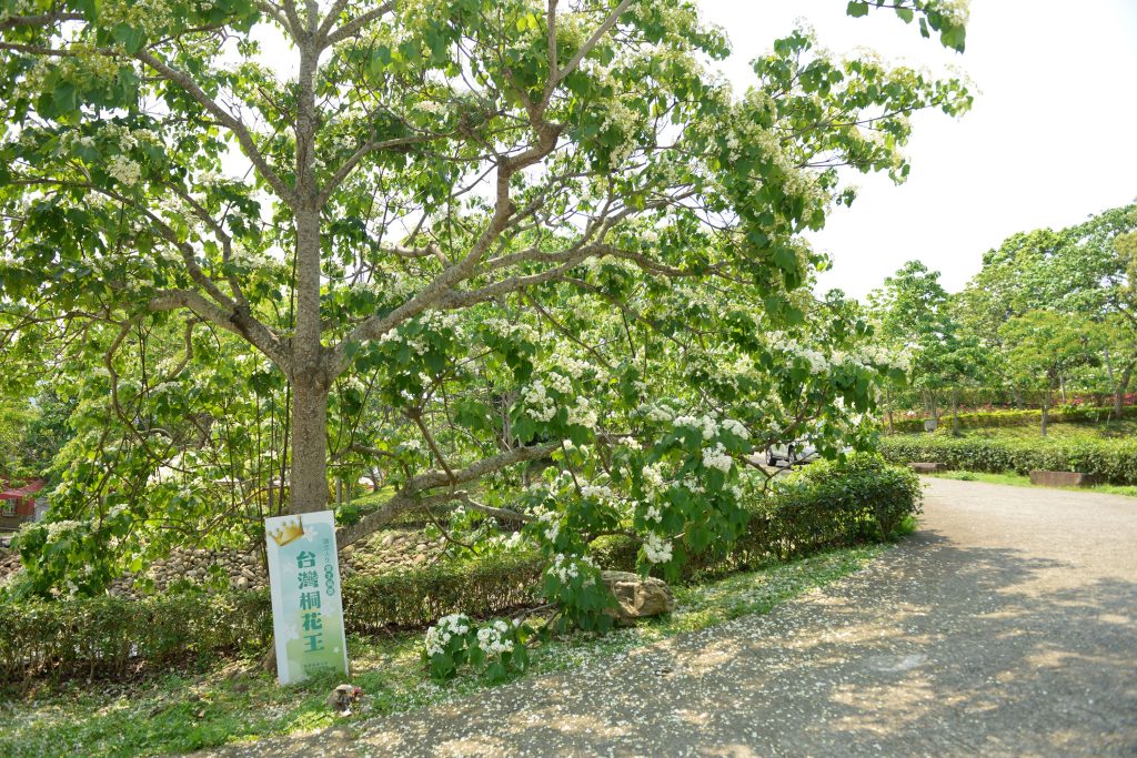 姜太公道場主席羅世新表示,客家大院園內種植上萬株油桐花樹,建置完善賞花步道系統,讓民眾可在花季期間悠遊林間,近距離欣賞桐花綻放之美。