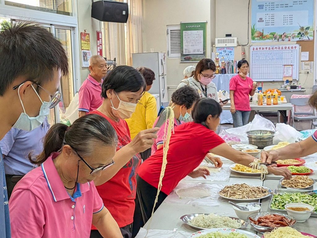 新市社內社區昔日為西拉雅族聚落,且不論荷據時期或明清據台時期,都是文明的所在,聚落人文歷史文化豐富,社區內志工平日不只打掃街道,只要社區需要就立即出動,所以社區為感謝志工的付出,十一日特別準備溫馨的潤餅聚會,讓志工回味古早的潤餅好味道。