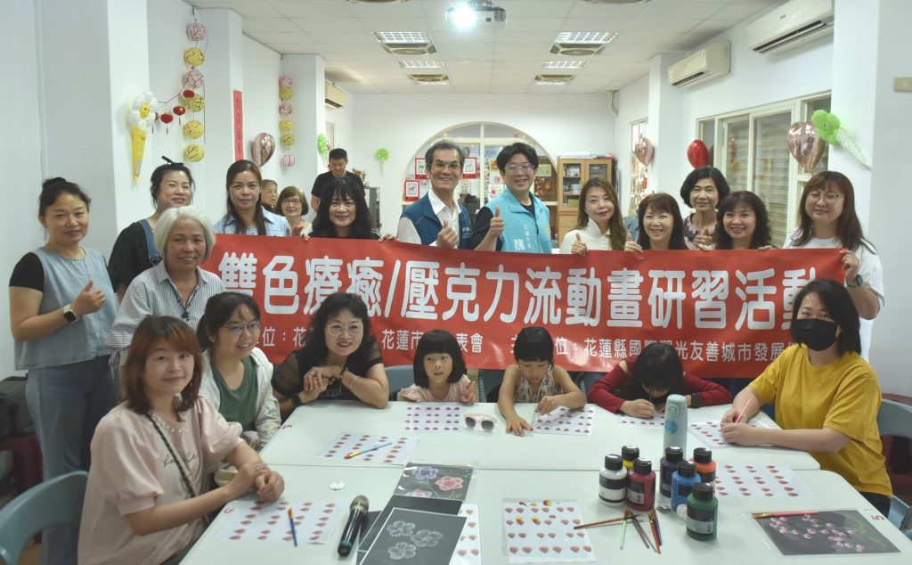 花蓮市公所持續推動社區藝文與終身學習,補助「花蓮縣國際觀光友善城市發展協會」辦理多元社區課程,十二日在北濱活動中心舉辦「雙色療癒.壓克力流動畫研習課程」,吸引各年齡層民眾熱情參與。