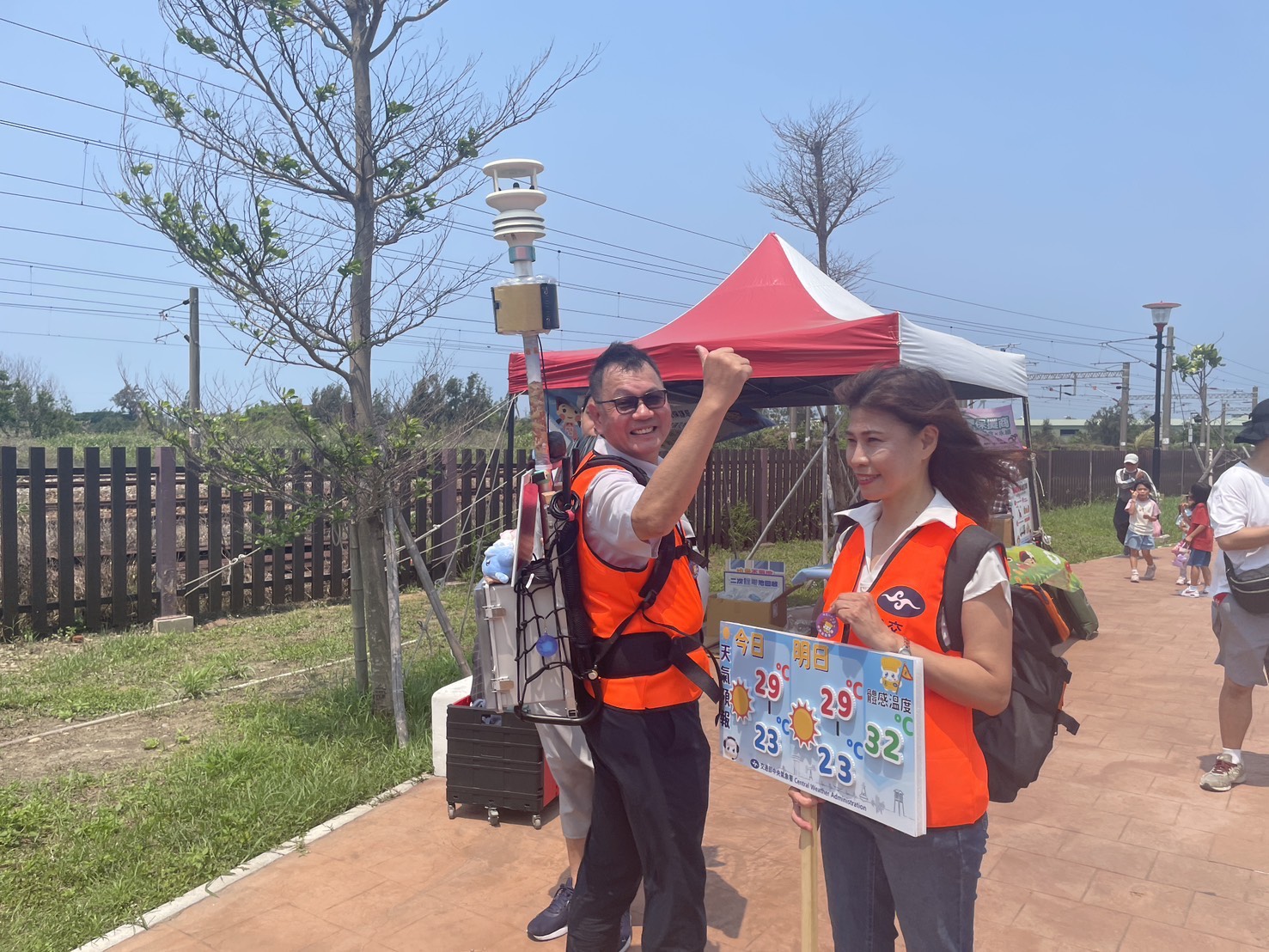 白沙屯媽祖進香活動於十二日晚間展開,中央氣象署長呂國臣、預報中心副主任伍婉華也在拱天宮廟埕進行現場氣象播報,提醒信徒未來幾日陽光強烈,民眾務必注意紫外線曝曬與高溫考驗。(圖:中央氣象署提供 文:記者傅希堯)