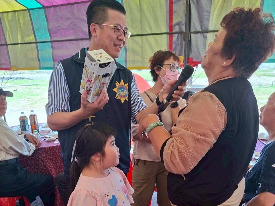 高雄市少年隊於社區活動中與長輩互動宣導防詐觀念,透過問答方式加深印象,並鼓勵民眾提高警覺、避免落入詐騙陷阱。(記者張翔翻攝)