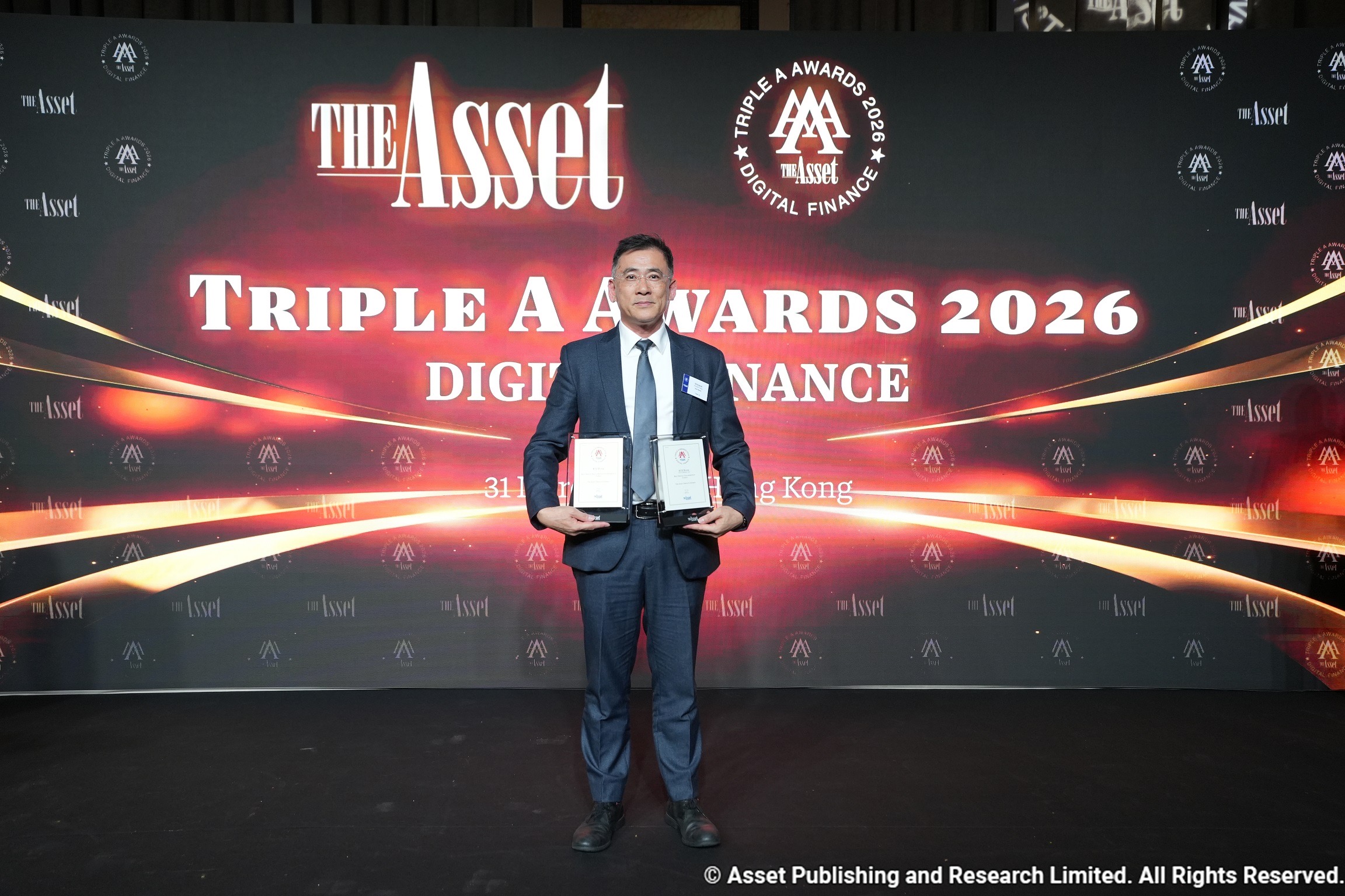 凱基銀行勇奪《The Asset》雙項大獎展現數位創新與防詐實力,由凱基銀行香港分行楊明仁副總經理代表出席領獎。(凱基銀行提供)