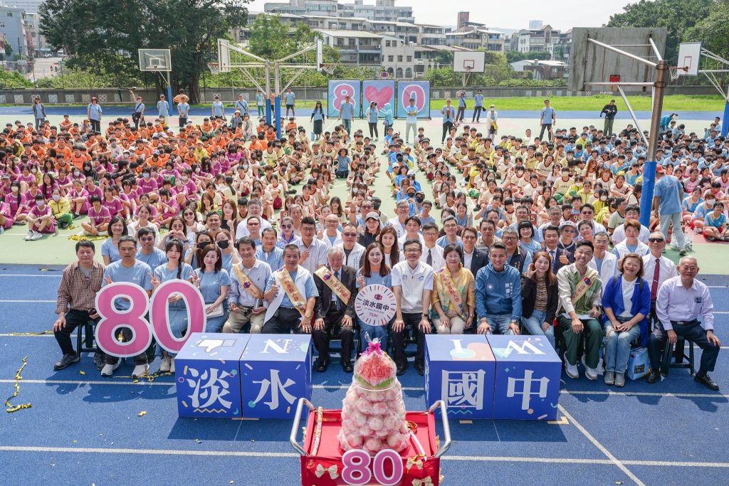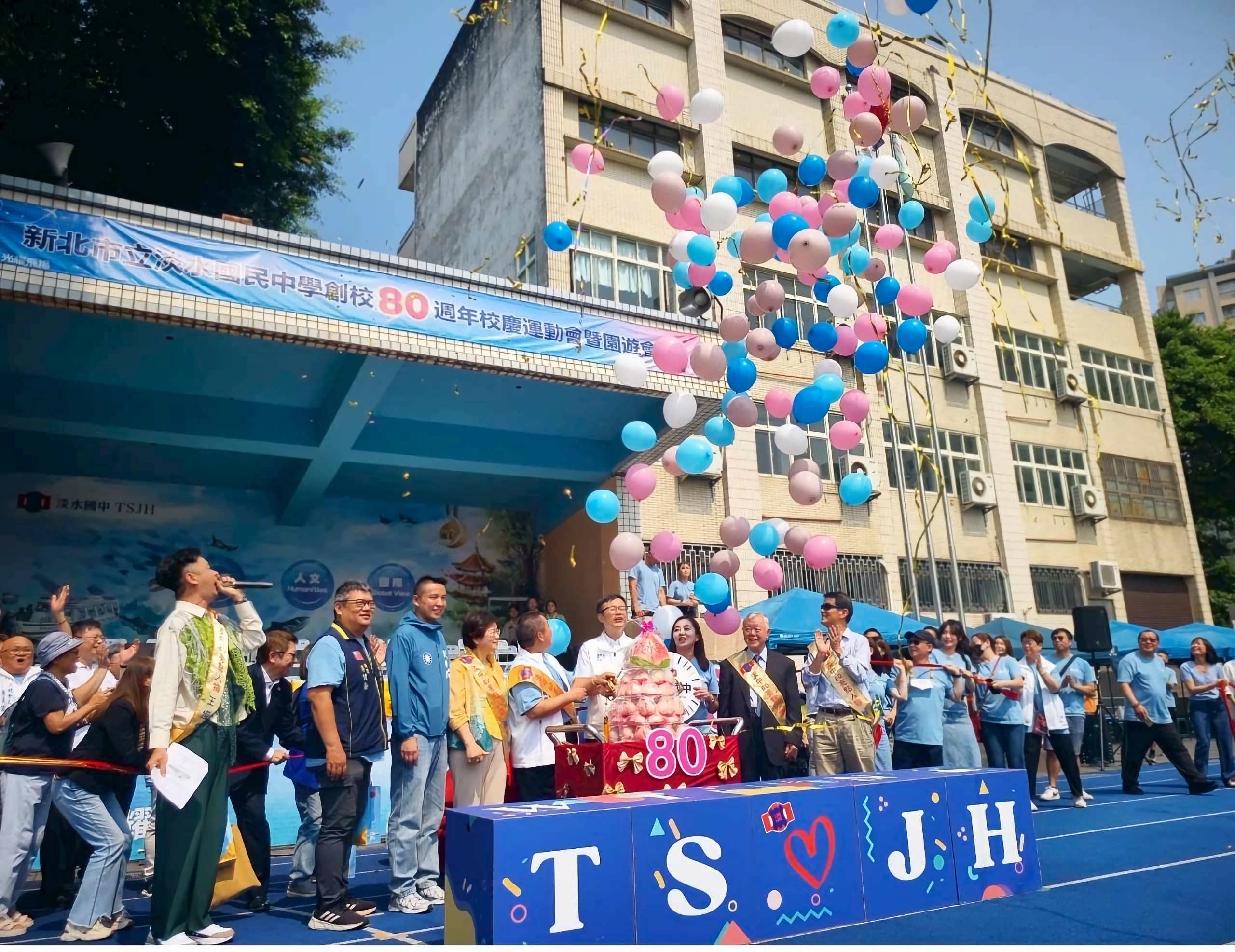 新北市淡水國中日前以「淡中新航・光耀飛揚」為主題,舉行創校80週年校慶。活動內容豐富多元,包含6位亮點人物校友返校共襄盛舉,並結合「淡中時光隧道」特展與植樹儀式,以及九年級追分祈福活動、熱鬧非凡的園遊會、精彩的運動競賽與學習成果展演。全校親師生、校友與各界貴賓齊聚一堂,在溫馨歡慶氛圍中,共同見證淡中八十載的深厚底蘊與卓越榮耀,攜手開啟邁向百年嶄新航程。