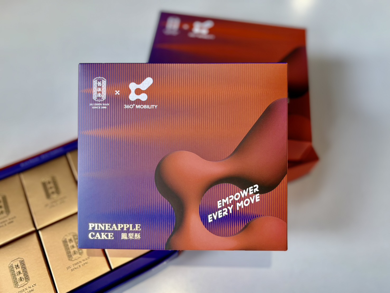 為遠道而來的國際貴賓獻上圓滿與繁榮的美好祝福,特別為 360° Mobility Mega Shows 設計六入鳳梨酥聯名禮盒,將承載台灣風味、象徵「旺來好運」的鳳梨酥換上限定包裝亮相,成為展會指定伴手禮首選,悉心招待來自超過80個國家的貴賓。