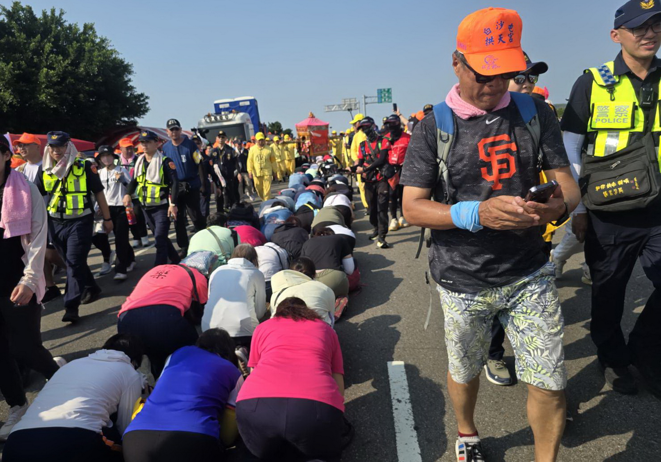 清水警分局長鄭鴻文十三日下午率領員警接駕白沙屯粉紅超跑,清水警分局共動員警力及民力約一百一十五人次,依鑾轎行進路線、人潮密集程度及車流狀況,機動調整交通管制措施,採取彈性車道管制,全力確保道路順暢與民眾安全。
