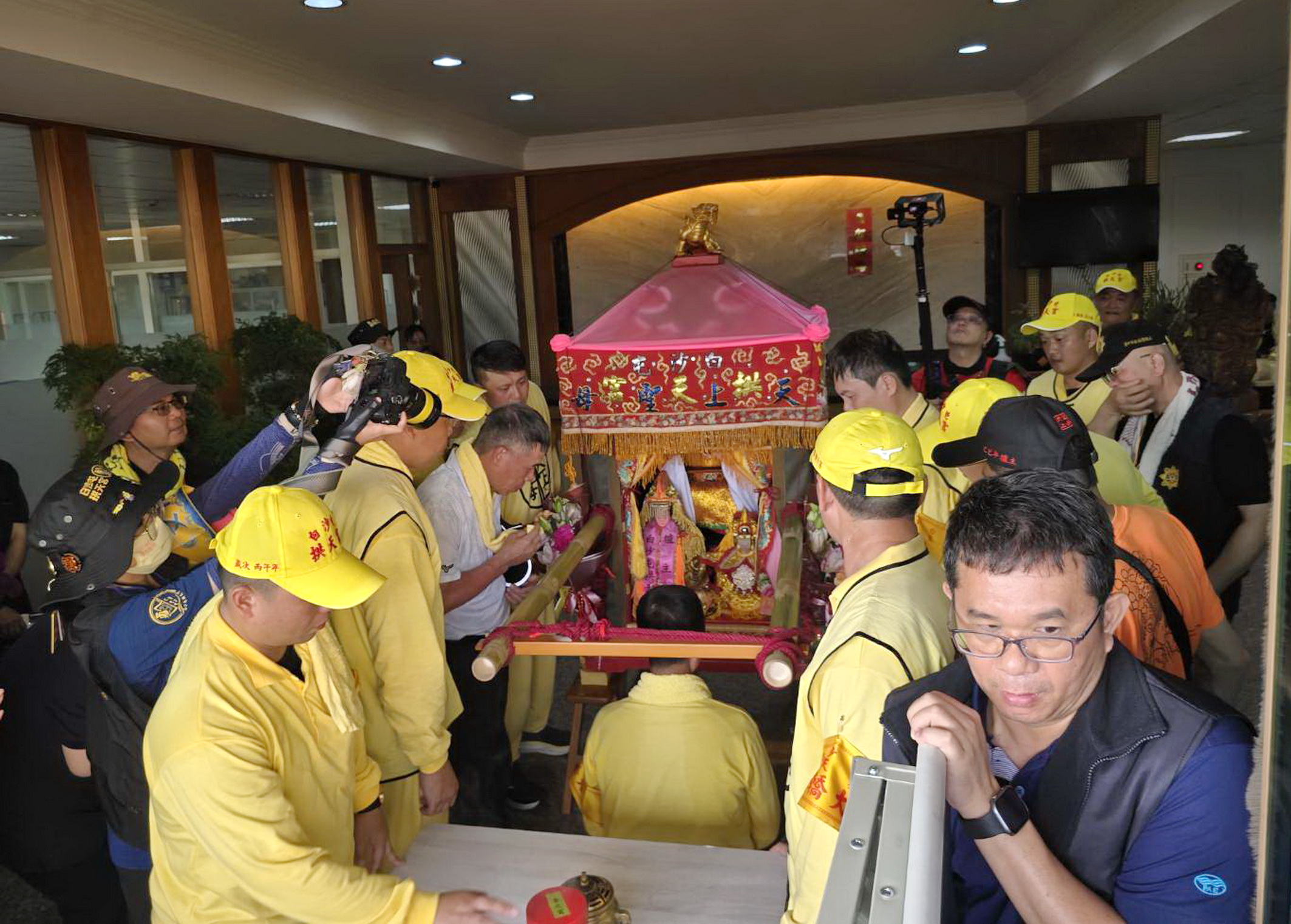 白沙屯媽祖鑾轎十三日下午在三田派出所停駕時,許多信徒等候鑽轎底,鑾轎再往前行走,停在清水區笠毅公司後駐駕,十四日淩晨二時起駕;據了解,白沙屯媽祖已三度進香經過該公司停駐,第一年駐駕時老板還不在公司,接到通知才知情。