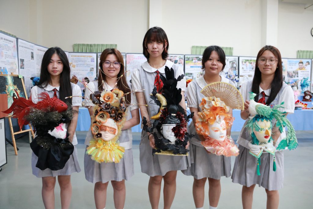 在靜態展區方面,美容與時尚造型科以個人賽形式,呈現人頭整髮、編髮造型、面具彩繪及指甲藝術等多元作品。有學生以台南古蹟與在地美食為靈感進行面具創作,也有人將髮材重新拆解、組裝成金魚、青鸞等立體造型,細膩工法與創意設計獲得評審高度肯定。