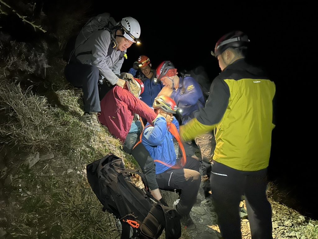 竹崎分局表示,謝姓男子(29歲)當日參加登山行程,挑戰玉山主峰,於夜間下山途中疑因體力透支失足跌落約10公尺深的邊坡山谷,同行友人發現後立即報案求助。警消接獲報案後,立即與保七總隊及玉山國家公園管理處人員趕赴現場,救援人員並於凌晨0時37分抵達,經確認謝男意識清楚、可正常應答後,搜救人員隨即展開架繩固定與吊掛作業,成功將其拉回步道。