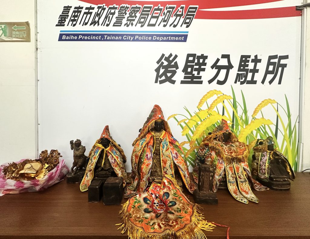台南市後壁區本協社區信仰中心「朝天宮」五尊神像,日前全部遭竊,引發信徒與當地住戶集體焦慮。白河警分局獲報後,迅速鎖定王姓竊嫌身分,並於三小時內尋回神像,讓廟方人員破涕為笑,更有熱心信徒駕駛高級進口名車前往後壁分駐所迎接神像,稱要讓媽祖「體面回宮」。