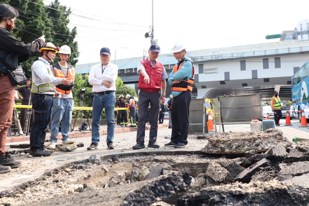 新北市工務局長馮兆麟表示,已經聯絡台電公司調派機具約下午2時40分左右進場待命,經台電檢測排除潛在風險、確認現場安全無虞後,隨即展開路面修復作業。同時要求台電於下班交通尖峰前完成修復,預計於今日下午6時前恢復正常通行,降低對用路人影響。