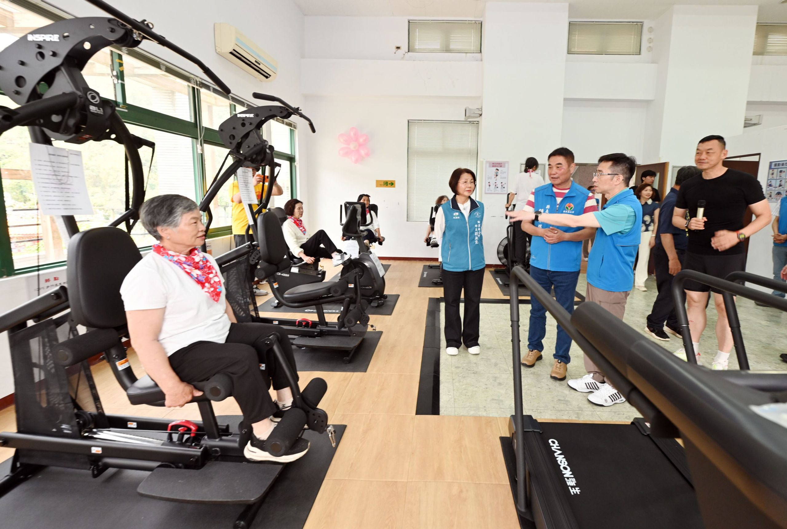 獅潭鄉銀髮健身俱樂部導入多項高齡專用設施,包括等速肌力訓練機、律動機、跑步機等心肺訓練器材,並規劃瑜珈課程,同時安排具中級體適能或延緩失能指導資格的專業教練,協助長者依照體能狀況循序漸進訓練,培養規律運動習慣,有效提升心肺功能、增強肌耐力與平衡感,降低跌倒風險、延緩退化速度,是一個專為銀髮族量身打造的運動空間。