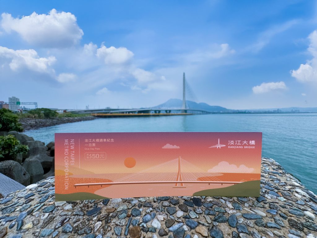 隨著跨越淡水河口的指標性建築「淡江大橋」即將完工通車,新北捷運公司為慶祝這座國際級地標的誕生,並配合通車前夕的一系列精彩活動,將於四月十六日正式推出「輕軌一日票(淡江大橋紀念票面)」。此款輕軌一日票不僅提供旅客便捷的交通選擇,更以精緻的設計紀錄下大橋與淡水河景交織的動人瞬間,深具收藏意義。