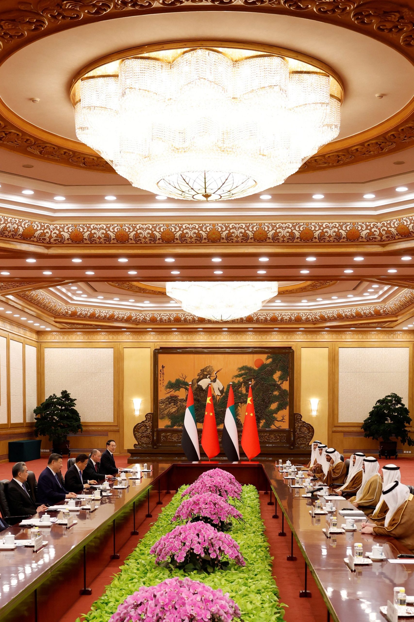 大陸國家主席習近平十四日在北京人民大會堂會見阿聯阿布達比王儲哈立德,就維護和促進中東和平穩定提出四點主張。(路透)