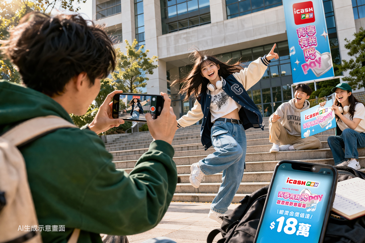 隨著短影音與AI創作成為年輕世代表達自我的主流方式,「icash Pay青春有我Pay(陪)」創意短影音徵稿活動即日起開跑,5月3日前,邀請全台大專院校之社團及系學會自由發揮創意投稿,參賽作品需融入icash Pay元素,並搭配150字內創意說明,今年活動更鼓勵Z世代靈活運用AI工具,將創意延伸為歌曲與影像作品,最終將評選出10所大專院校社團或系學會,每組提供等值新台幣18,000元之成果發表會贊助資源,總價值達18萬元,入選名單將於5月8日公告於icash Facebook粉絲團,讓icash Pay不只陪伴青春,更是陪伴莘莘學子一同打造最精彩的成果發表會!