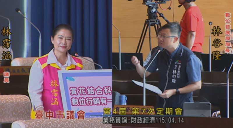 台中市議會14日進行財政經濟業務質詢,台中市議員林霈涵、林碧秀共同關心數位局推動「空間地圖查詢系統」應用成果,特別針對整合建設局、觀旅局、農業局資料的「台中賞花地圖」表示高度肯定。市議員林霈涵指出,該地圖提供一站式查詢服務,將過去分散的資訊化為直覺式的數位地圖,是地理資訊系統GIS轉化為便民服務的具體展現,值得全面推廣。