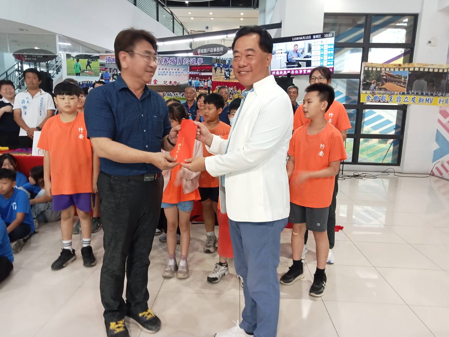 頭城鎮大溪國小與竹安國小在全縣體育賽事中脫穎而出,鎮公所十五日舉辦記者會,由鎮長蔡文益親自頒發獎勵金,勉勵這群「頭城體育之星」持續勇敢追夢。