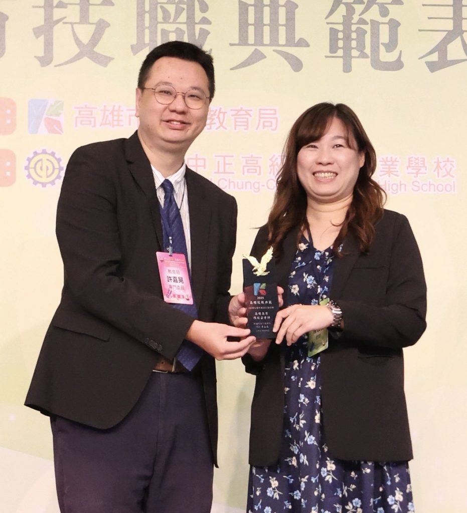 二0二五高雄技職典範表揚典禮十五在中正高工舉行,公開表揚一一八位長期投入技職教育、指導學生於國內外競賽中屢創佳績優秀教師;其中獲獎的高雄高商教務主任陳玟姿,國中家庭貧困未升學,但她不畏逆境,從工廠回到學校講台,並且培育出技職金牌學生,用教育翻轉人生、點亮學子未來