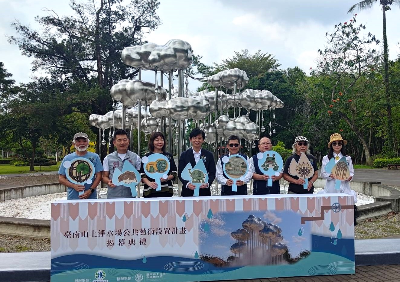 山上花園水道博物館迎來兼具歷史厚度與當代表達的公共藝術。台灣自來水公司斥資兩千五百萬元在水道博物館設置八座裝置藝術,十五日舉行盛大揭幕儀式,由自來水公司董事長李嘉榮偕同台南市副市長葉澤山主持,多位民代及地方人士與會見證這歷史性的一刻,典禮不僅象徵公共建設與藝術跨域合作的成果,也為城市文化景觀再添一筆細膩而深遠的註解。