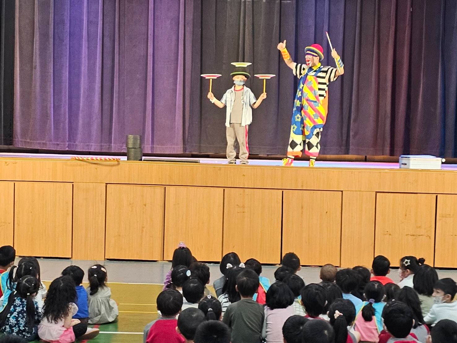 教育局表示,活動以莊重的「校內模範生表揚」揭開序幕,肯定學子們在各方面的優異表現,樹立學習典範;之後604班同學帶來精彩的「品格創意秀」,以「快樂是自己創造出來的」為主題,透過生動活潑的話劇與舞蹈演出,不僅展現了學生的創意,更將正向的價值觀深植於孩子心中。為了讓全校師生都能盡情同樂,緊接著由學校特別邀請的「兆群藝術娛樂有限公司」帶來精彩的雜耍表演,並安排幼兒園及低、中、高年級分批觀賞。「小丑哥哥」以高超的技巧帶來球類拋接、平衡特技、趣味魔術及肢體喜劇等多項節目,更邀請學生上台互動體驗。近距離的藝術接觸讓孩子們驚呼連連,現場掌聲與笑聲不絕於耳,完全沉浸在驚奇與歡樂之中。