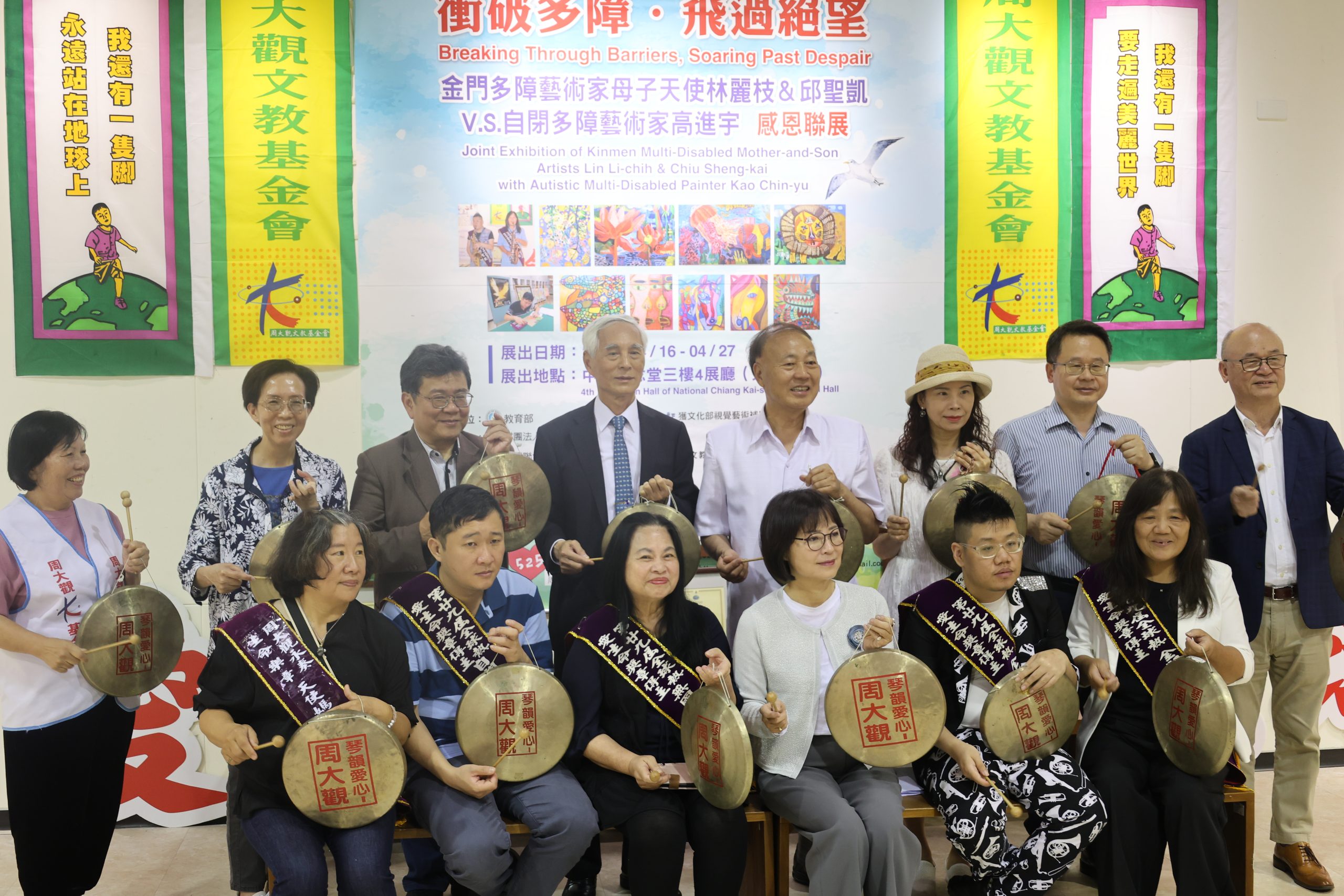 為永續推動「全球熱愛生命運動」,周大觀文教基金會提倡「天生我材必有用」,十六日在中正紀念堂四樓展廳公布「二0二六年第廿九屆全球熱愛生命獎章」得主,同時提前頒獎肯定無國籍寶寶守護天使楊婕妤、金門多障藝術家母子天使林麗枝與邱聖凱、自閉多障藝術家高進宇,並為「衝破多障.飛過絕望」邱聖凱與高進宇感恩聯展開鑼,誠邀社會各界人士於即日起至廿七日至展廳免費參觀。