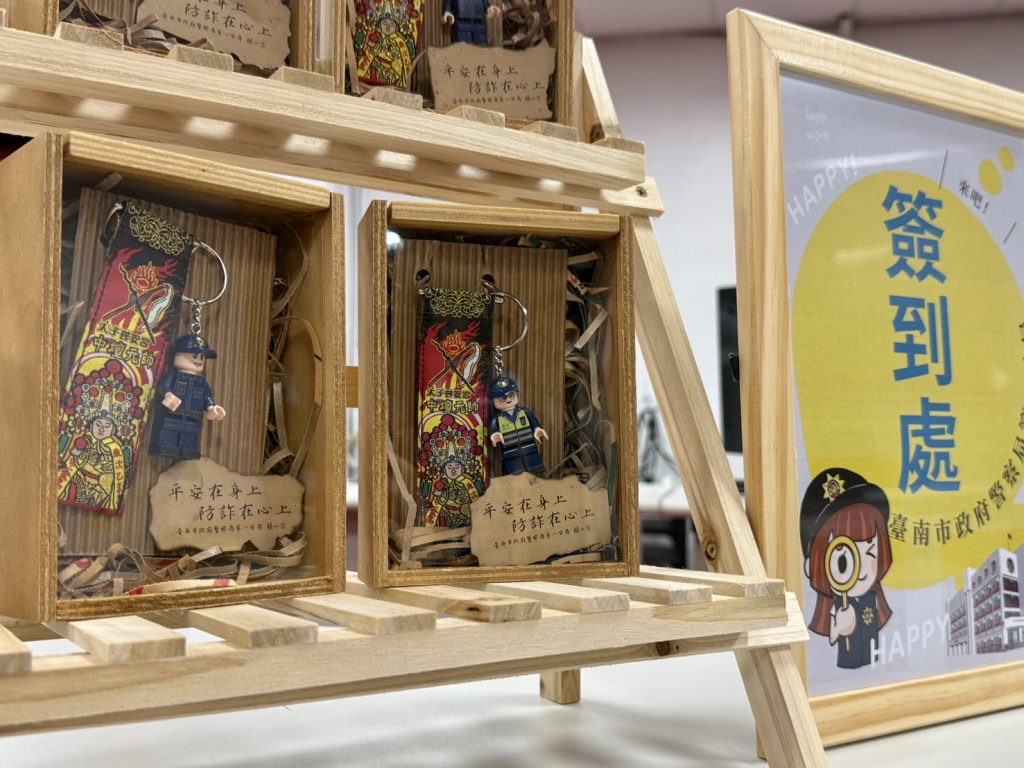 第一分局特別致贈與會來賓手工製作平安符及警察樂高造型鑰匙圈,以「平安在身上、防詐在心上」為宣導主軸,感謝各協力單位長期投入阻詐工作,展現警民攜手打造全民防詐安全網的決心。