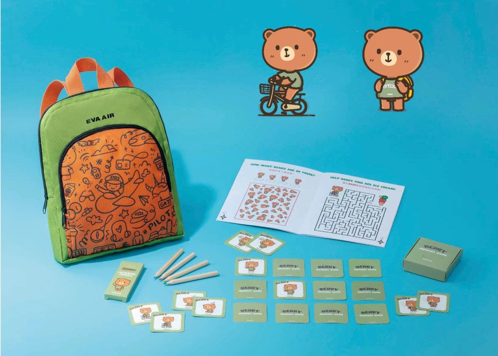 長榮航空於台灣出發的航班也提供暑期兒童玩具包,設計造型新穎活潑,內容包含互動遊戲書與記憶遊戲卡等趣味小物,結合娛樂與學習,讓小小旅客在飛行途中也能歡樂滿滿。