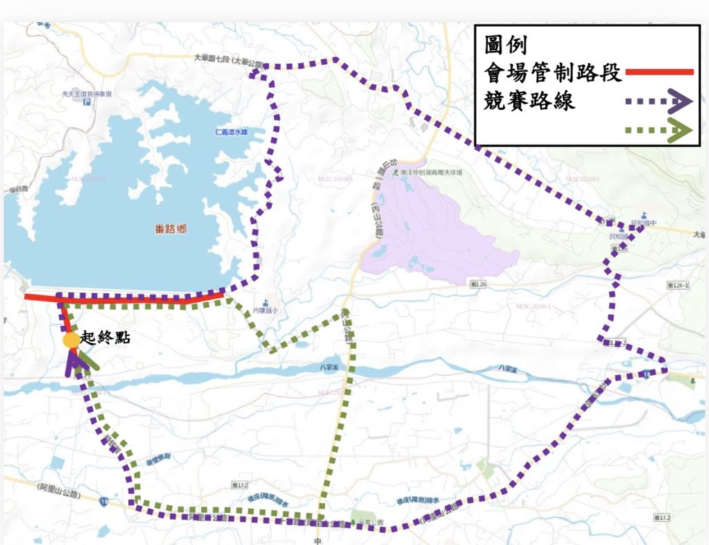 全中運自由車個人公路賽路線涵蓋中埔鄉、番路鄉及仁義潭周邊,競賽路線將實施交通管制,提醒用路人提前規劃行車動線並配合管制措施。(記者張翔翻攝)