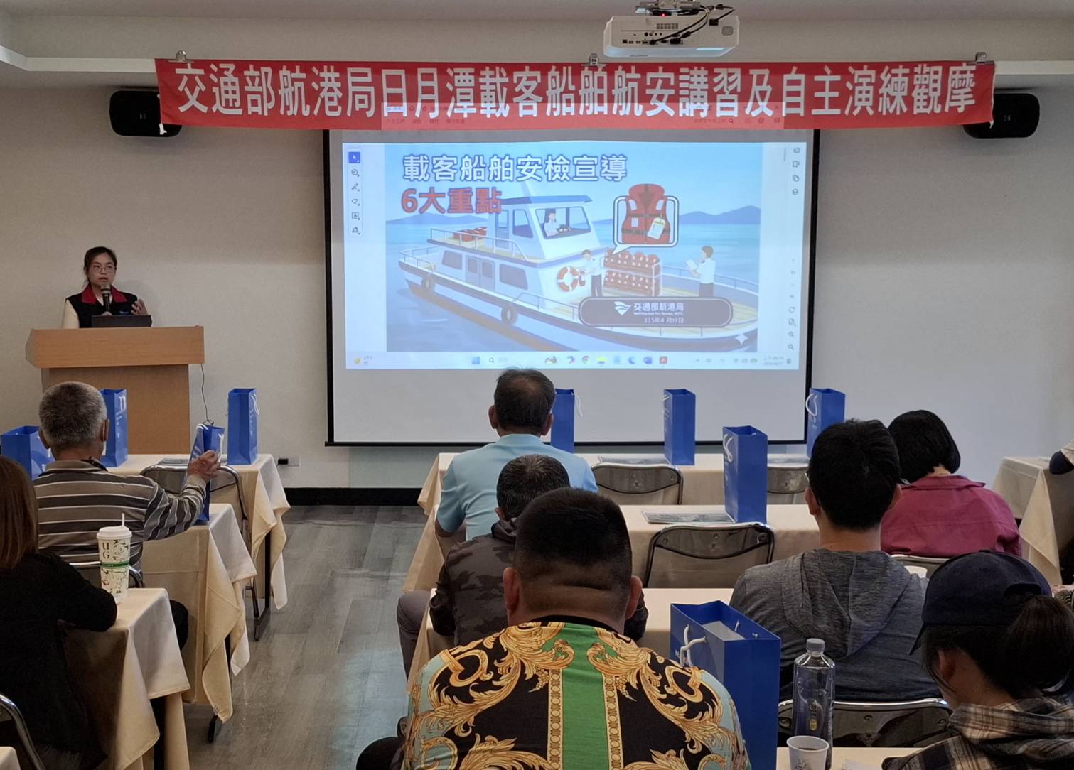 航港局指出,透過定期的航安講習演練,不僅強化船員專業素養,提醒業者熟悉及強化航前檢查及應變機制,更能將專業知識應用於平日作業,另外由中央結合地方政府及水域管理機關構建立互助協防與通報機制,亦確保大眾遊客均能在安全的環境下飽覽湖光山色。