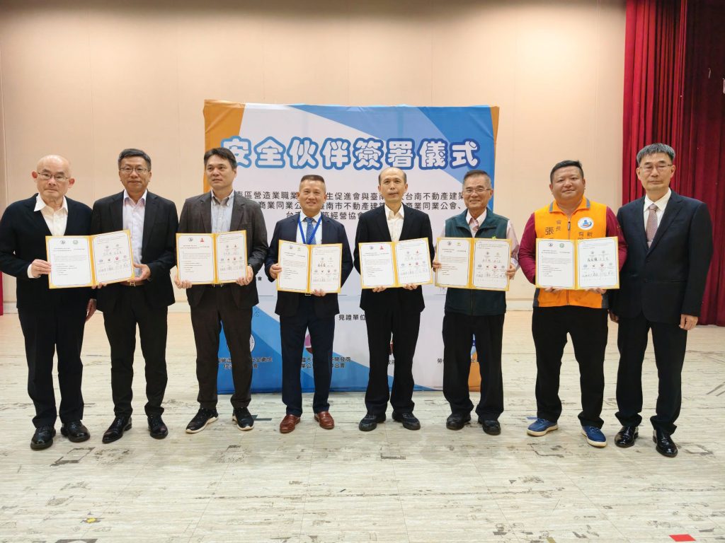 強化建築產業對職業安全衛生新制的理解與落實,南區職業安全衛生促進會攜手大台南不動產建築開發商業同業公會、台南市不動產建築開發商業同業公會及台南市建築經營協會,十七日下午舉辦共同締結安全伙伴活動,這也是全國首場,希望打造「零公安」目標,也呼籲業界正視法規變革,及早因應。