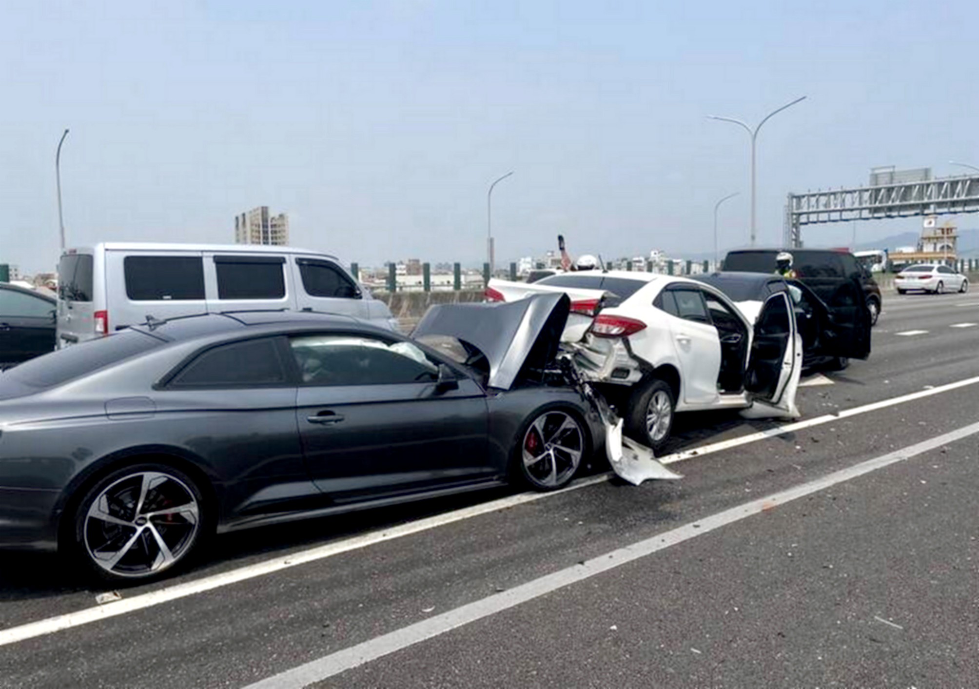 經查,三十五歲龍姓男子當時駕駛奧迪轎車,行駛於外側車道時,不慎與前方由二十四歲李姓男子與四十九歲靳姓男子駕駛的兩輛轎車連環碰撞。事故造成四人受傷,其中龍男自行就醫,另李男、靳男及乘客四十一歲陳姓女子則由救護車送醫治療,經酒測三名駕駛均無酒駕情形。