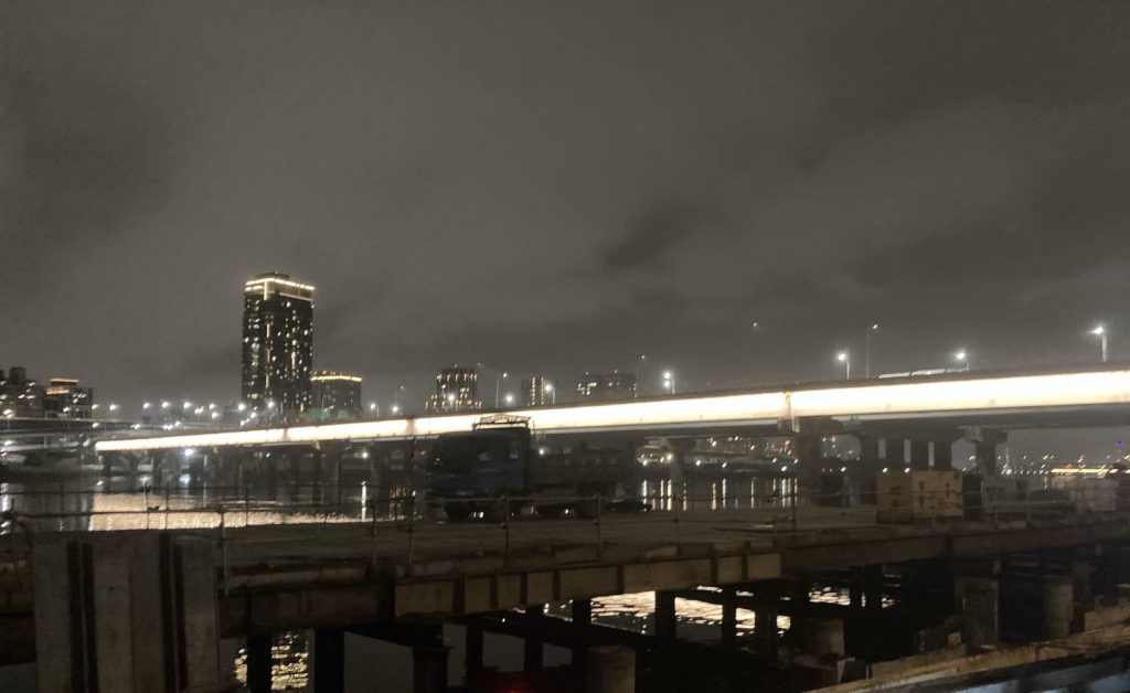 新北市工務局長馮兆麟表示,本次施工係因臺北橋往三重方向的光雕設備損壞,考量維護夜間景觀品質並提升節能效益,將進行修復工程,期盼完工後能重新點亮淡水河畔,維護優質的城市風貌。