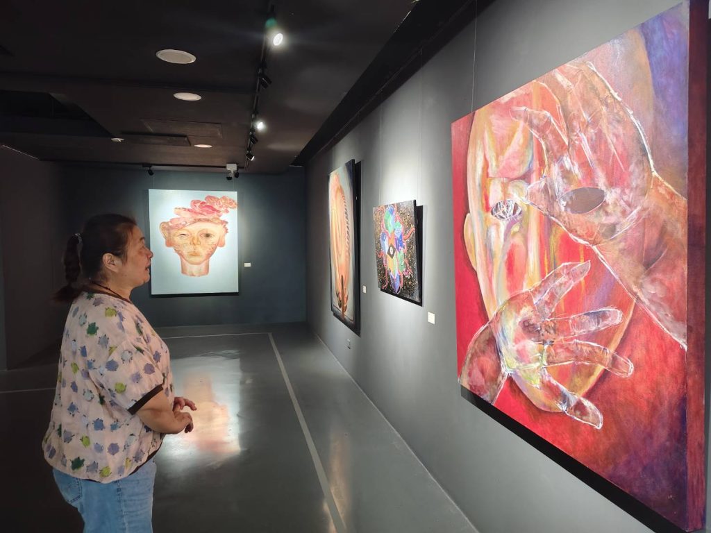 南應大美術系畢業聯展作品涵蓋抽象與具象繪畫、平面創作及立體裝置等不同媒材。(記者陳佳伶攝)