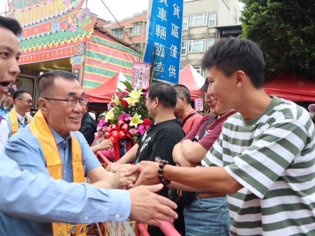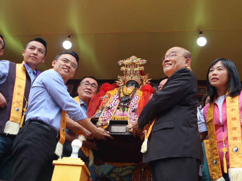 隨後,李四川趕赴淡水福佑宮參加遶境祈福,新北市副市長劉和然、前行政院長蘇貞昌及跨黨派民代也到場共襄盛舉,並一同恭請媽祖登轎起駕。
