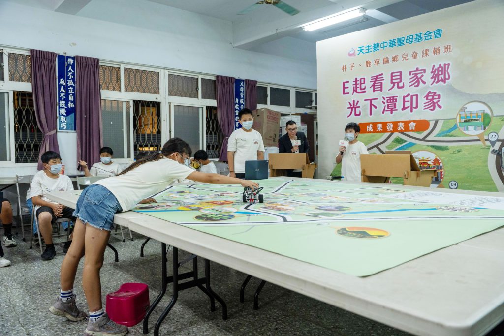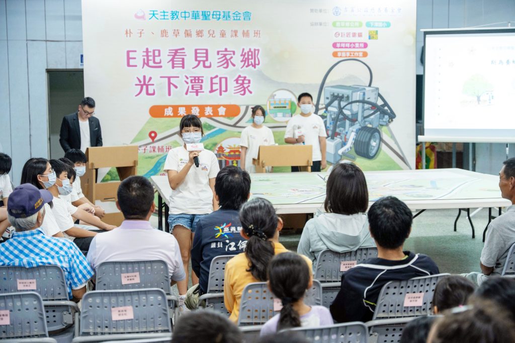 天主教中華聖母基金會4月17日於嘉義縣鹿草鄉下潭社區活動中心舉辦「E起看見家鄉~光下潭印象」成果發表會。這場發表會集結基金會朴子與鹿草兩區偏鄉國小兒童課輔班14位高年級孩童,展現他們113小時的學習與6位跨領域老師共同努力的成果,學童們克服偏鄉的數位資源落差,從實地探查到水彩、電繪、動畫,及最後的機器人編程,經過不斷的試錯與堅持,在活動中展現學習的成果。