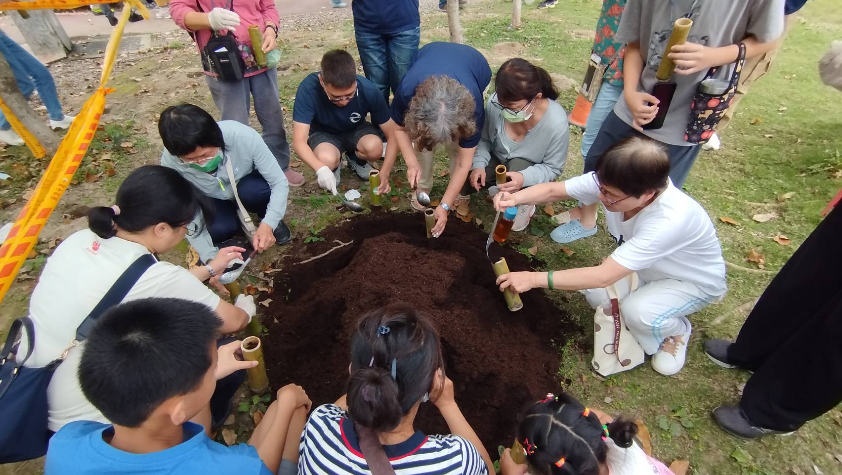 由新竹長和宮辦理的二0二六春日青梅季系列活動之【共築美樹影】十八日下午於長和公園登場,延續先前採梅漬醋後,此次以「護梅樹、惜梅枝」為主軸,邀請專業團隊示範樹木剪養護,吸引一百五十位市民親子踴躍參與,參與者以親手製作的竹筒有機酵素為梅樹施肥,並利用修樹剪下來的枝條,進行大自然藝術創作,長和宮主任委員楊金土邀請大家走入公園,參與一場關於「土地、時間與循環」的感官盛宴。