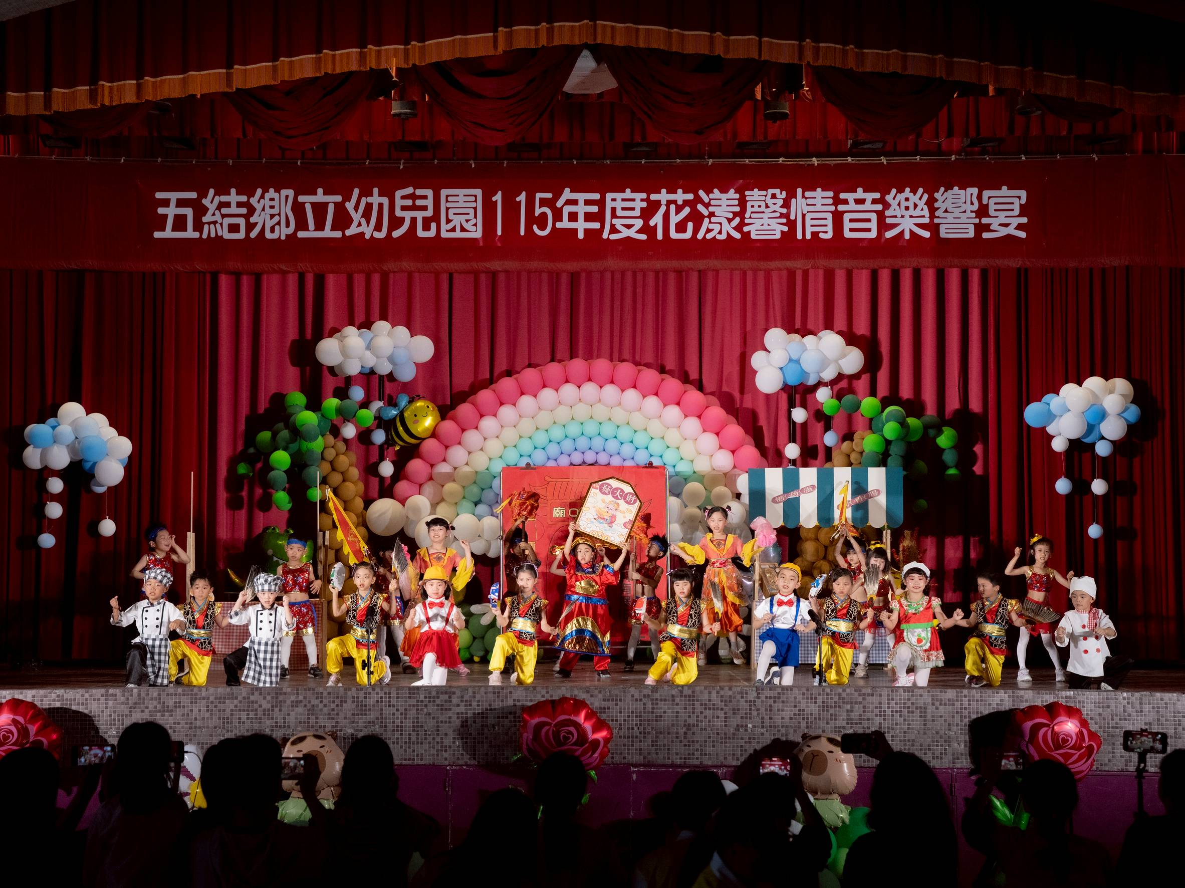 五結鄉立幼兒園十八日舉辦「一一五年度花漾馨情音樂響宴」活動,分別於上午及下午在利澤國民小學松竹館登場,透過音樂劇、美語展演及樂器合奏等多元形式,讓幼兒展現學習成果,現場氣氛溫馨熱鬧,吸引不少家長與民眾到場觀賞,共同見證孩子們的成長與蛻變。