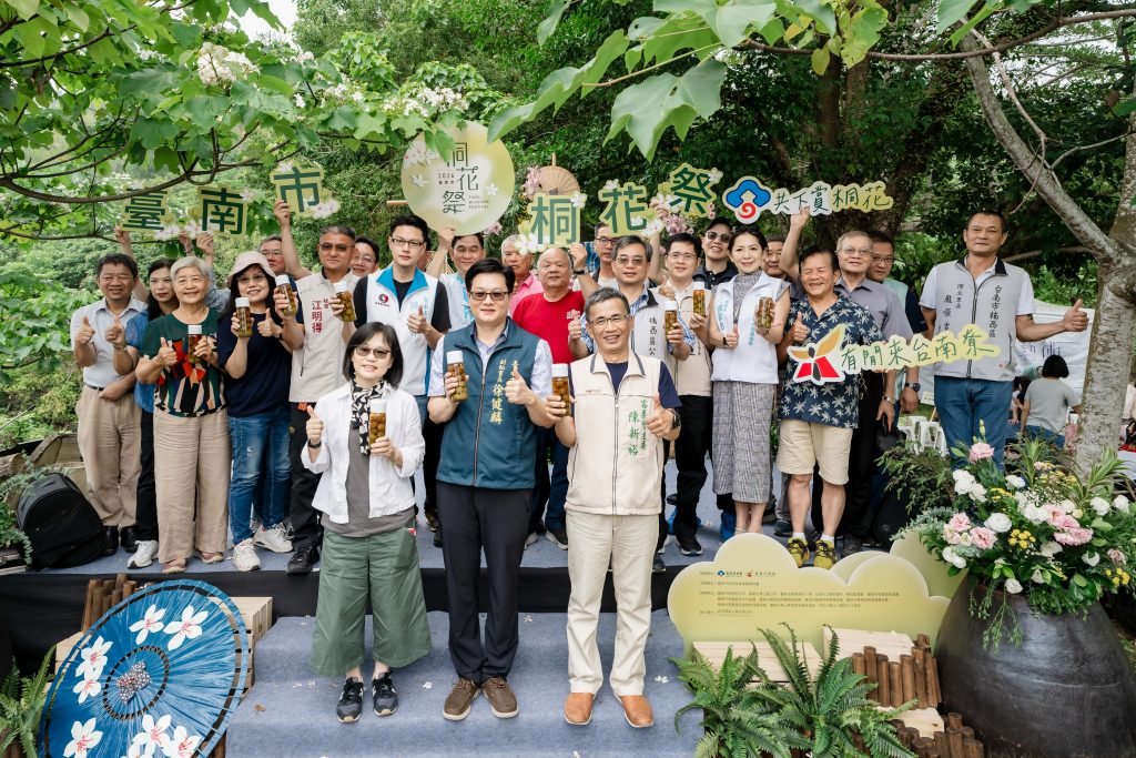 台南市政府客委會主委陳新裕表示,梅嶺桐花林散落在百年梅園中,背後有一段孝親思鄉的溫暖故事,結合周邊豐富的旅遊資源,來到這裡不僅能賞桐、採青梅,還能享受溫泉、古厝、水庫、步道與美食,讓旅程一次滿足。