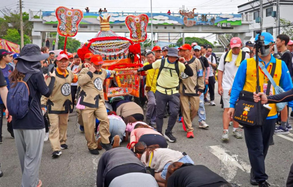 大甲媽祖昨日上午八時四十分進入龍井區,較去年提早近三小時,由台中市警局烏日警分局長謝博賢率員接駕,並以優勢警力護轎。現場民眾更是一早到場守候,對鑾轎提早到來超級驚喜,爭相鑽轎底。