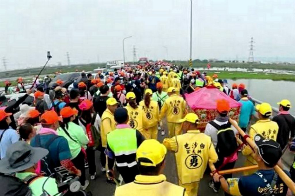 白沙屯媽祖回鑾昨日走台十七線通過中彰大橋進入台中,無緣「雙媽會」。(記者陳金龍攝)