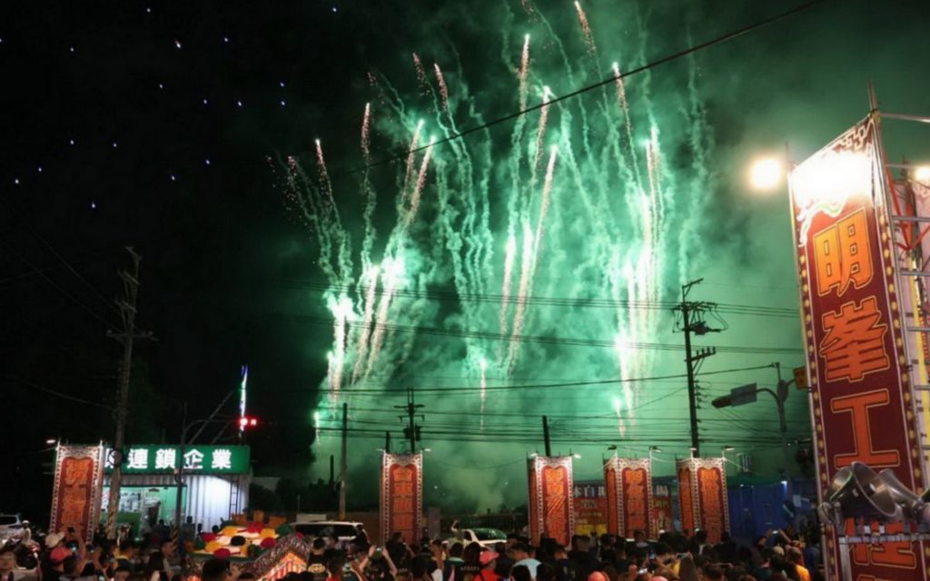 大甲媽祖遶境進香活動十八日凌晨進入清水區,信徒施放絢爛煙火盛大迎接媽祖,海線地區有如不夜城。(記者陳金龍攝)