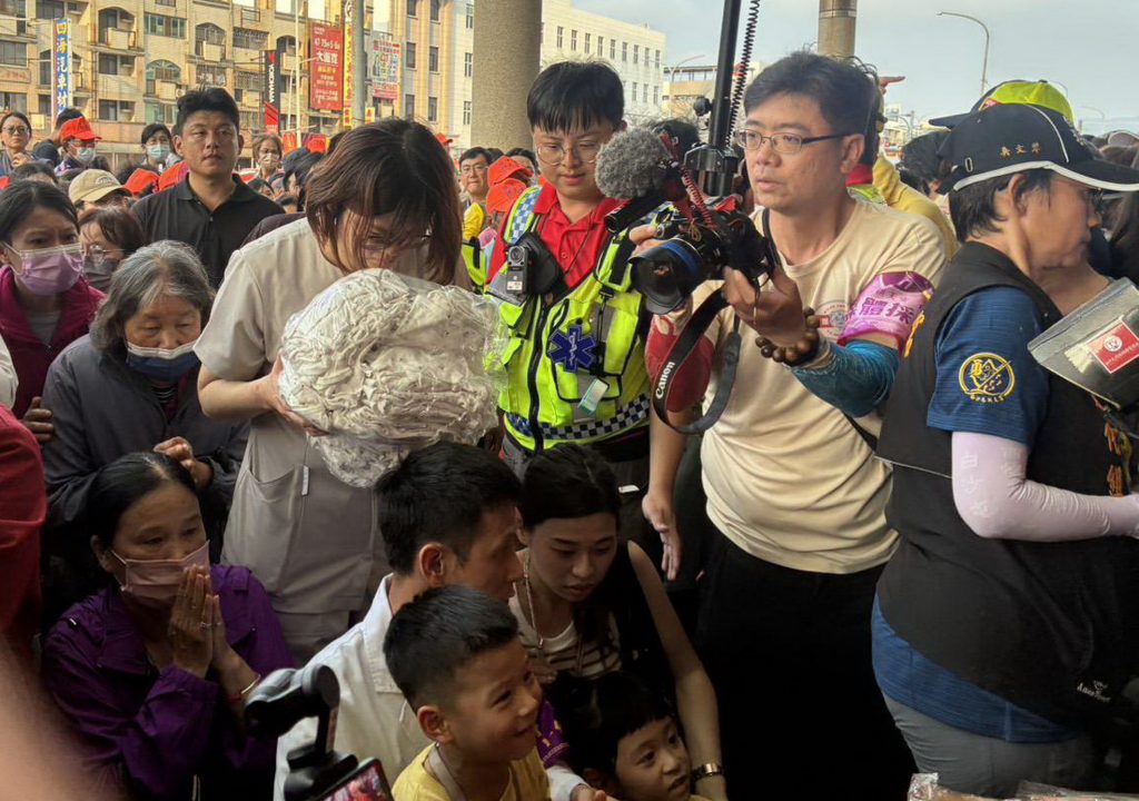 白沙屯媽祖昨日停駕童綜合醫院,護理人員也帶新生兒寶寶衣服祈福。(記者陳金龍攝)