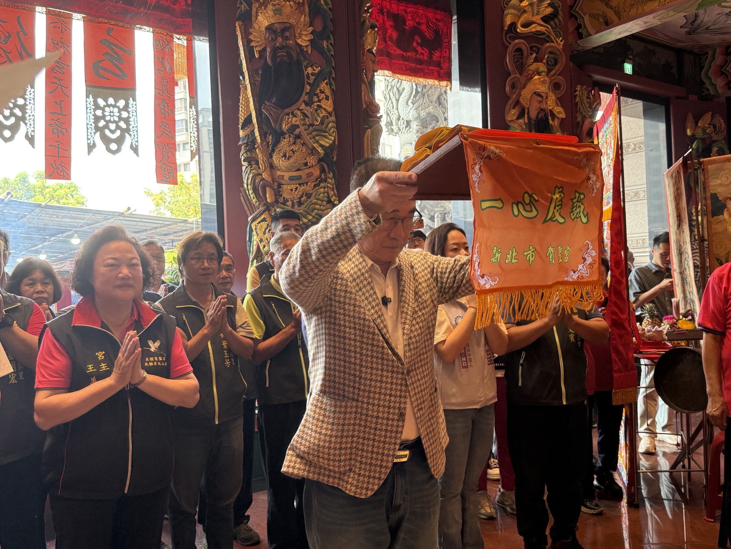 國民黨新北市長參選人李四川今(19)日上午出席五股賀聖宮恭祝玄天上帝聖誕,許多信眾紛紛與李握手合影。致詞前,廟方特別感謝李四川過去積極協助賀聖宮合法設址,也有里長肯定他在五股地區推動攔沙工程等政績。對此李四川表示,當選後將持續為地方打拚,全力推動建設與城市發展。