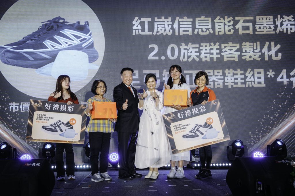 活動尾聲還有摸彩活動,不只人人有獎,更摸出30位超級大獎,包含紅崴明星產品──價值35,800元的紅崴信息能石墨烯2.0族群客製化足弓矯正器鞋組!在氣氛最熱烈時,紅崴科技創辦人謝進興博士加碼贈送再2項大獎,讓參與者滿載而歸,享受屬於自己與夥伴們的榮耀時光。