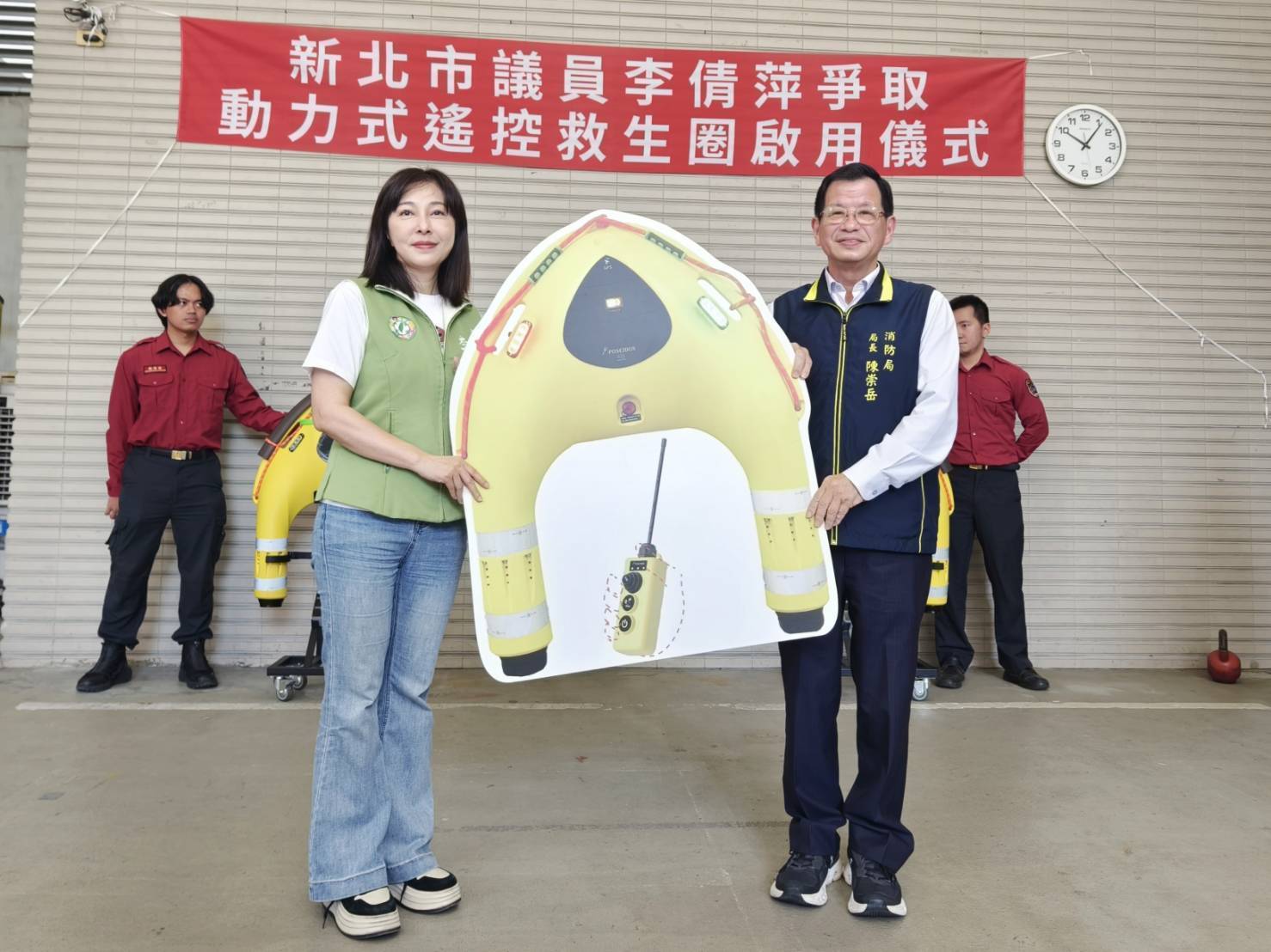 在新北市議員李倩萍積極爭取下,新北市議會通過總經費約新臺幣76餘萬元救災裝備經費,經由消防局採購動力式遙控救生圈2組,新北市消防局今(20)日上午10時整於消防局辦理動力式遙控救生圈啟用儀式,統籌配發予新店及八里分隊使用,將有效提升第一線水域救援能量,守護市民生命安全。