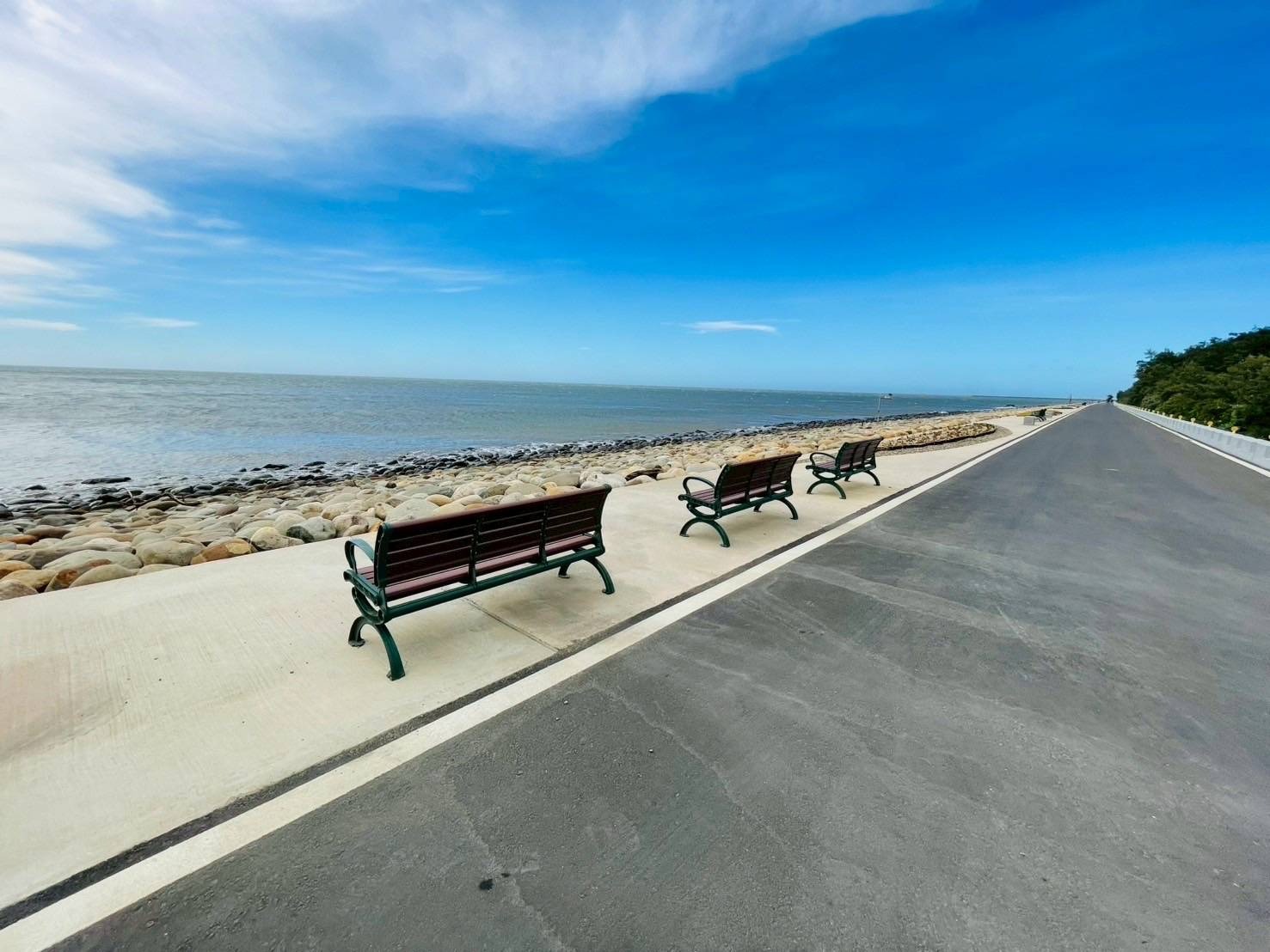 海資處提到,位於後湖溪臨海側的後湖珍珠海岸,經海資處以自然工法重建940公尺拋石海堤,設計1:6緩坡三層塊石結構強化防護功能,大幅降低颱風暴潮易淹及海岸侵蝕倒退的風險,並使道路與堤面等高,使遊客能零距離擁抱無限海景。今年2至4月間,試營運期間已有許多民眾慕名前來,並紛紛於於社群媒體分享影片,吸引更多網友前來朝聖,並給予最美夕陽海灘的封號,絕對是個適合夕照、觀海、聽濤的好地方。
