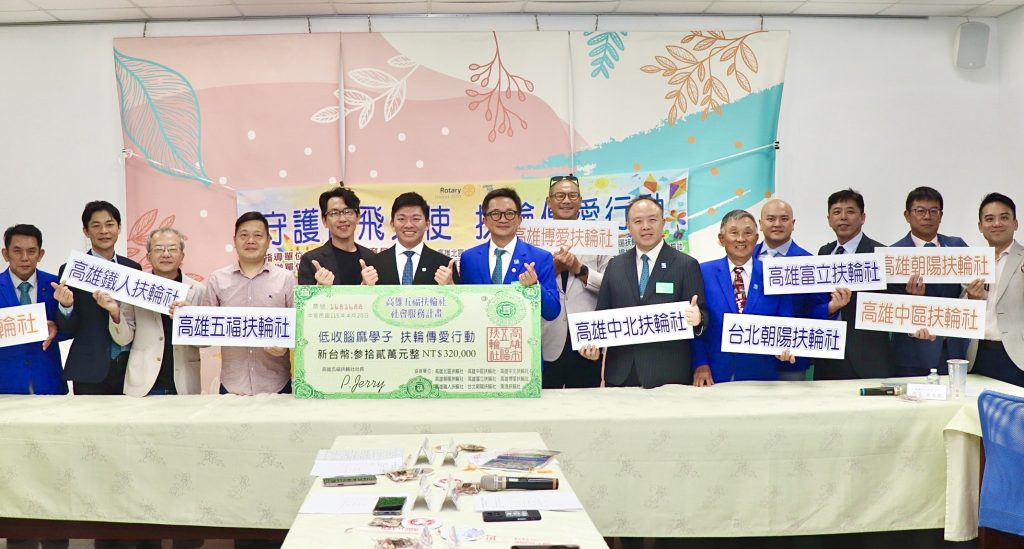 為扶助弱勢學子、落實社會關懷,高雄市五福扶輪社展現大愛,由潘劭偉社長帶領社員代表,二十日在高雄市教育局舉行獎學金捐贈儀式,吳立森局長代表受贈並頒發感謝狀,感謝五福扶輪社善心義舉,嘉惠本市十二名低收腦麻學子學習之路。