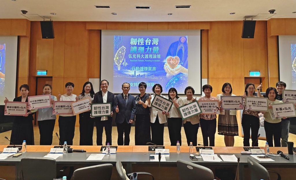 在全球公共衛生挑戰與高齡化社會雙重壓力下,如何強化國家健康體系的「韌性」已成為當前健康政策的核心。弘光科技大學與校友總會,於日前舉辦「韌性台灣、護理力量」護理論壇,由校長蘇弘毅、衛生福利部護理及健康照護司司長蔡淑鳳共同揭開序幕,邀請中部地區醫事機構及公會代表共同發表「支持韌性台灣」護理行動宣言,展現產、官、學界攜手守護台灣健康的決心。